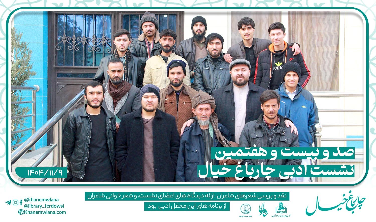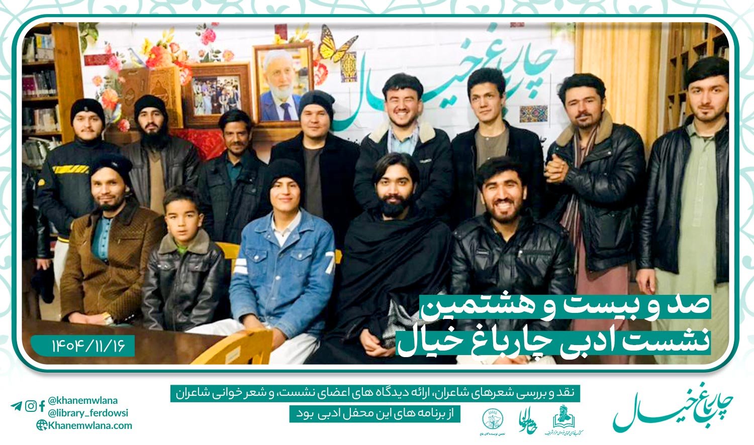 نشست صد و بیست و هفتم صد و بیست و هفتمین نشست ادبی «چارباغ خیال» در بلخ، بعد از ظهر روز پنجشنبه ۹ دلو (بهمنماه) ۱۴۰۴ هجری خورشیدی، با...