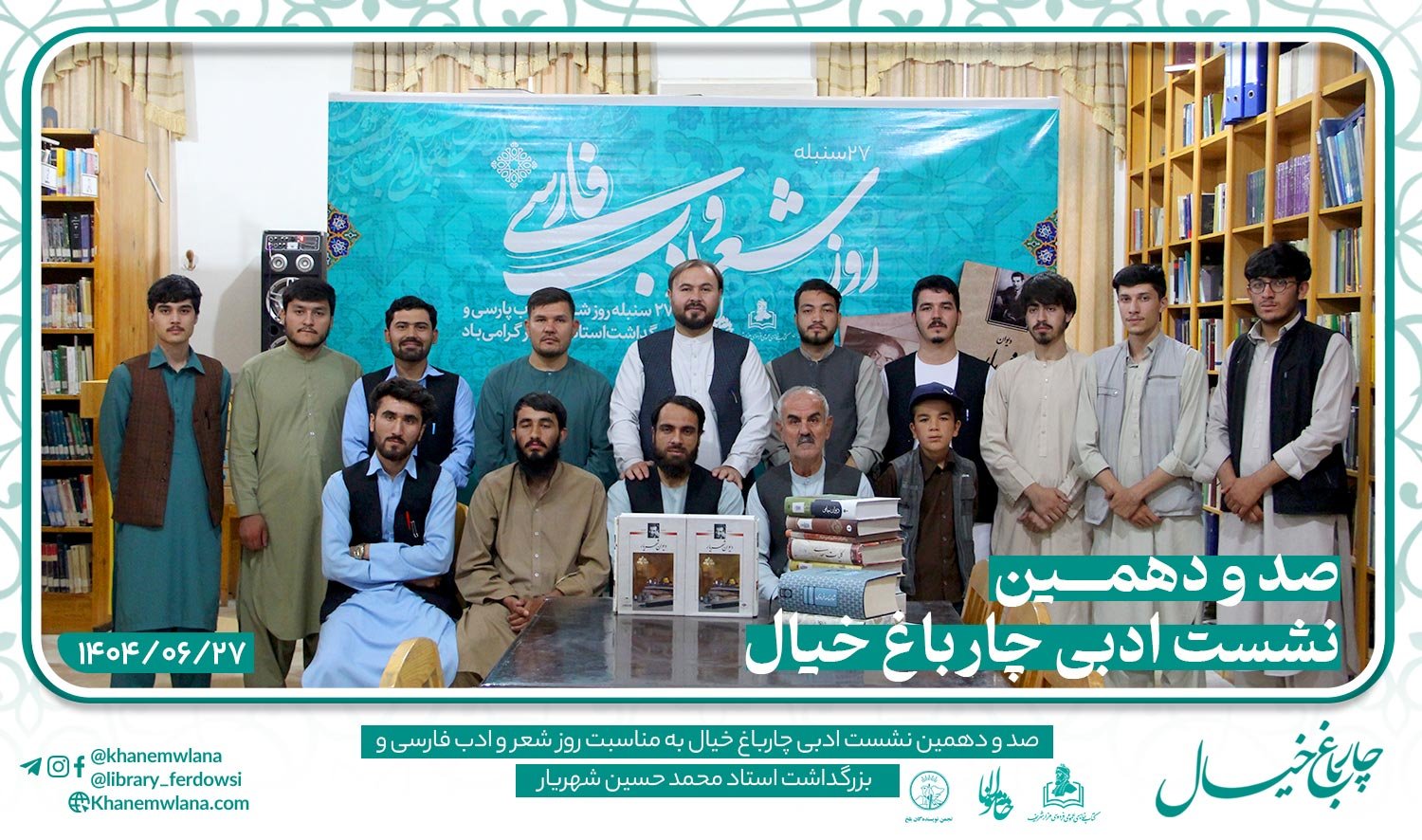پنجشنبه، ۲۷ سنبله، به مناسبت هفتهی شعر و ادب فارسی و در گرامیداشت از سالروز درگذشت شاعر فرهیخته و بلندآوازه، استاد محمدحسین شهریار، محفل باشکوهی فرهنگی ـ ادبی در مزارشریف برگزار شد. این برنامه به همت انجمن ادبی «خانهٔ مولانا»، انجمن نویسندگان بلخ و با همکاری کتابخانه عمومی فردوسی شکل گرفت و با حضور گستردهی اهل شعر و ادب، شاعران، نویسندگان، دانشجویان و دوستداران فرهنگ و هنر، رونق خاصی یافت.