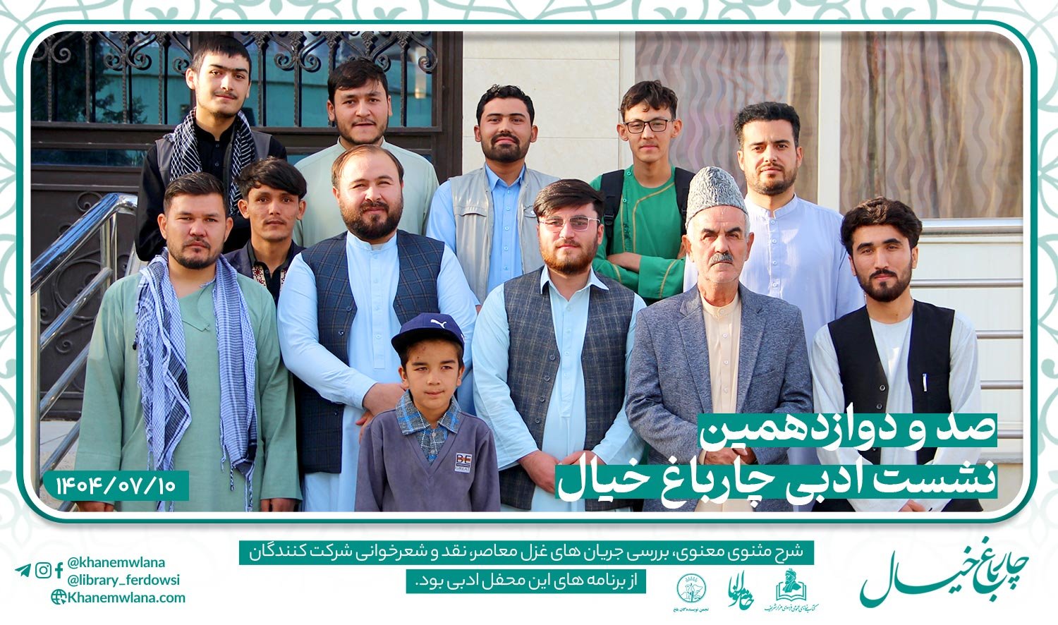 نشست: صد و چهاردهم گزارش: سهراب حفیظی صد و چهاردهمین نشستِ ادبی «چارباغِ خیال» در شهر کهن بلخ، پیوند خورده...