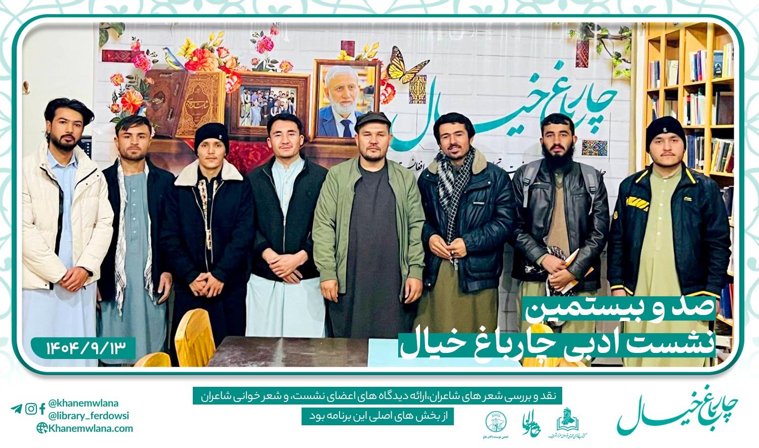 نشست هشتاد و سوم چارباغ خیال با گردانندگی «ویس شیرازد» یکی از شاعران جوان بلخ آغاز شد و با خوانش متن کلاسیک، نقد و بررسی شعر و خوشخوانی شعر همراه بود.