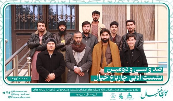 نشست صد و سی و دوم گزارش: سهراب سوشیان صد و سیودومین نشست ادبی «چارباغ خیال» در بلخ، بعد از ظهر روز پنجشنبه ۲۱ حوت (اسفندماه) ۱۴۰۴ هجری خورشیدی، با مقدمه...